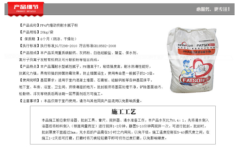 胖子 【內(nèi)墻】胖子PF4內(nèi)墻勁炭耐水膩?zhàn)臃? 20 Kg