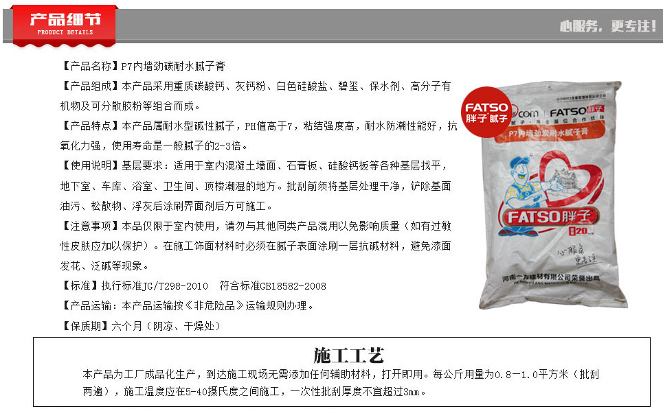 胖子 【內墻】胖子P7內墻勁碳耐水膩子膏 20 Kg
