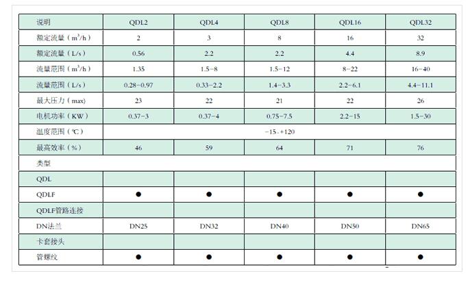 QDL立式多級(jí)不銹鋼離心泵是采用國際先進(jìn)技術(shù)制造而成,其最大優(yōu)點(diǎn)是水力模型設(shè)計(jì)先進(jìn),效率高,節(jié)能效果明 顯。水泵內(nèi)部葉輪、泵殼及其主要配件采用不銹鋼沖壓成型,流道特別光滑,軸瓦、軸套用硬質(zhì)合金,具有超強(qiáng)的使用 壽命,避免產(chǎn)生二次污染。軸封采用耐磨機(jī)械密封,無泄露。電機(jī)采用Y2鋁外殼,進(jìn)口軸承,絕緣等級(jí)F級(jí)。泵運(yùn)轉(zhuǎn)平 穩(wěn),低噪音,整機(jī)質(zhì)量可靠,外形美觀、體積小、重量輕、運(yùn)輸安裝方便,是理想的綠色、環(huán)保、節(jié)能水泵。