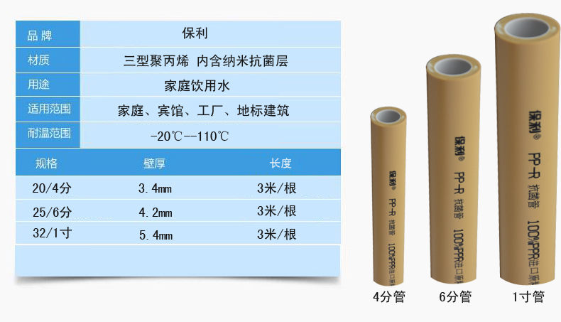 保利 保利ppr水管 6分黃色納米抗菌管 家裝自來水管ppr抗菌管 20/熱水管/3.4/20*3.4/4