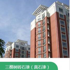 三棵樹磚石漆(真石漆)是由高分子乳液聚合物和能構成仿石材紋理的天然彩砂,助劑等材料組成的厚質涂料,其外觀如石頭一般自然、穩重、氣派并且附著牢固,具有優異的耐候性、柔韌性和抗沖擊性,符合國家規定的JG/T 24《合成樹脂乳液砂壁狀涂料》標準。其裝飾性具有很強的仿石材及歐式風格效果,是當今社會裝飾高檔小區、別墅、公共建筑的流行裝飾材料。