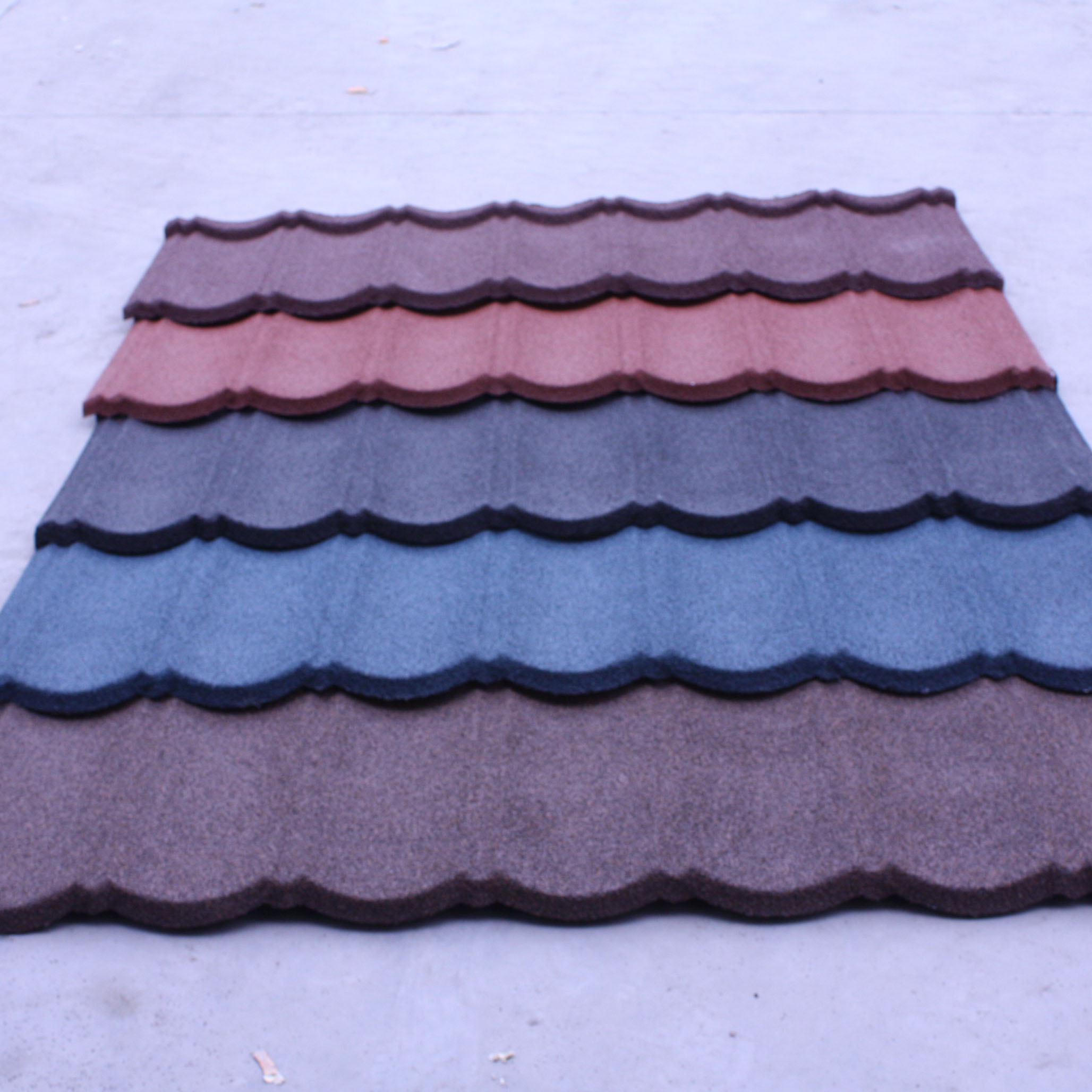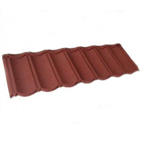 彩石金屬瓦,是采用高新技術生產的,以防腐性能優異的鍍鋁鋅鋼板為基板,以耐候性極強的丙烯酸樹脂為黏合劑,以彩色天然沙礫為面層的新型高級屋面材料。因其美觀、輕巧、耐用、環保,近年來已經成為國際屋面材料的主流產品,國內的一些高檔建筑也已開始使用。