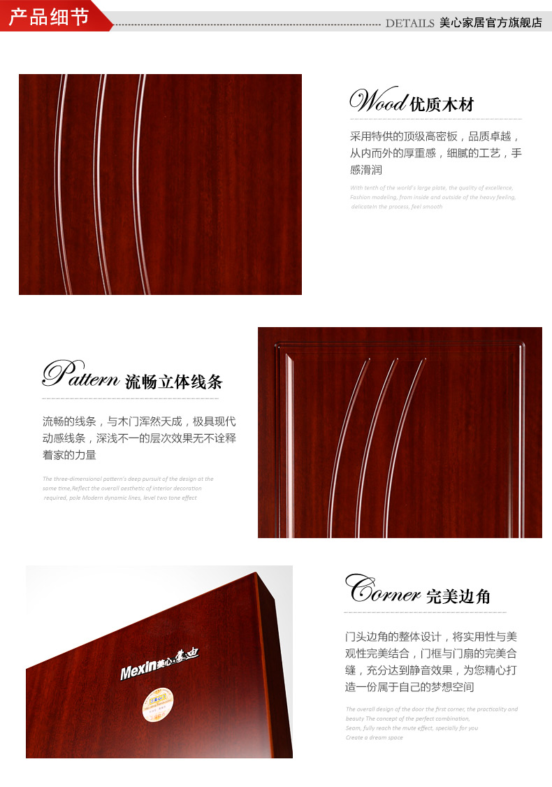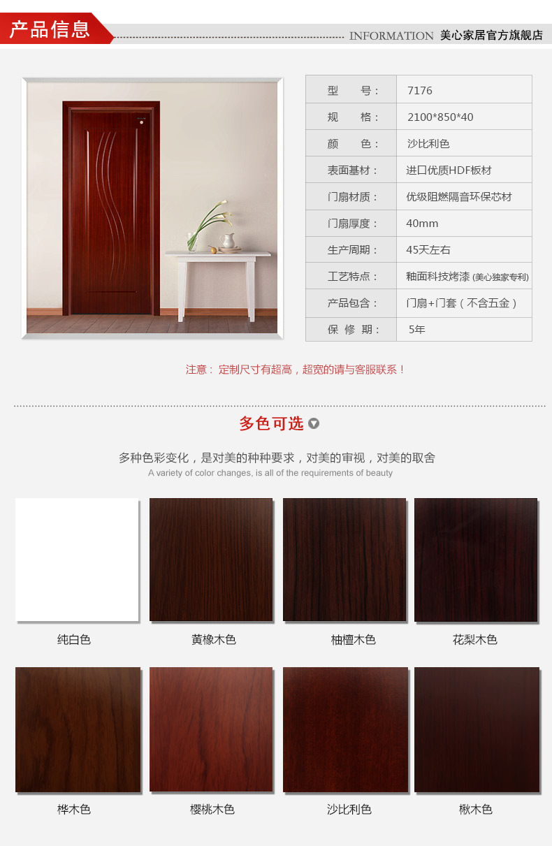 美心 簡約室內門實木復合門靜音門臥室門 全屋定制7176