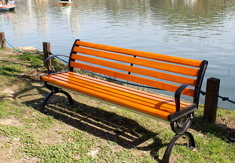 益之勝 戶外園林休閑椅公園椅子鑄鐵防腐木室外長椅凳子實木靠背座椅