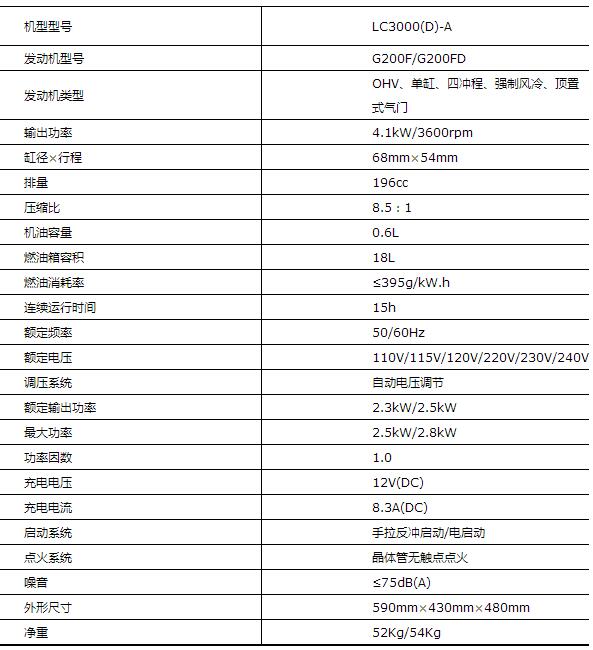 隆鑫 LC3000(D)-A新A系列發電機組