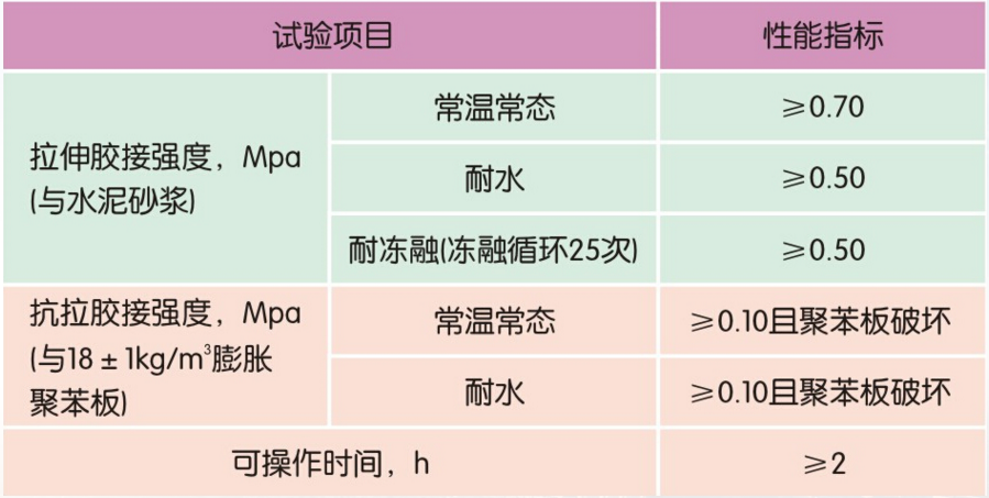 表3外墻外保溫用粘接砂漿技術性能指標