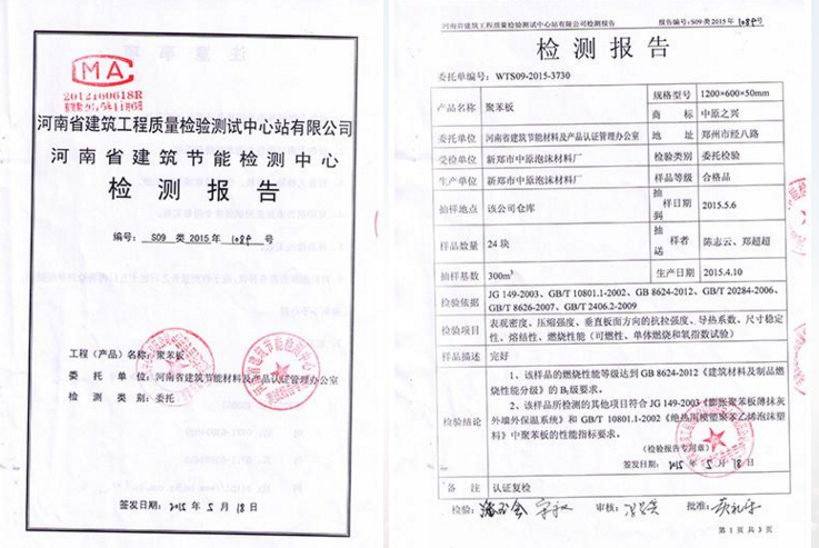聚苯板建科院檢測報告B1級檢測報告